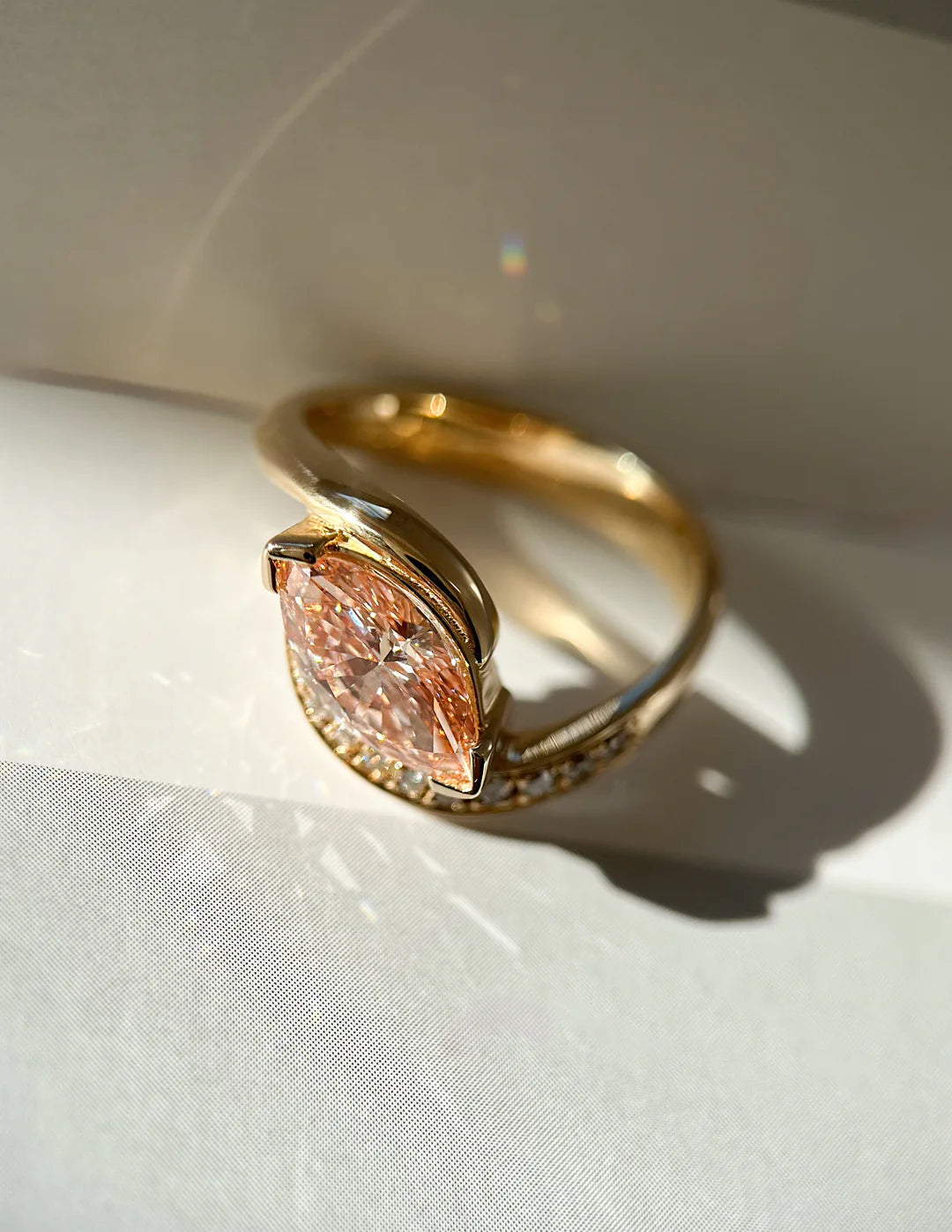 This 1.0CT pink marquise lab grown diamond ring showcases a soft romantic hue with a striking elongated silhouette. The pink marquise center stone is enhanced by delicate pave accents, adding refined sparkle and unique character to the design. Crafted as a premium solid gold ring, it offers lasting durability and a smooth, comfortable fit for everyday wear. This distinctive diamond ring makes a beautiful engagement ring and a modern alternative wedding ring. Designed to stand out among elegant rings for women, it blends contemporary artistry with timeless charm. A meaningful choice for anniversary gifts, this ring celebrates love with color, individuality, and enduring beauty.