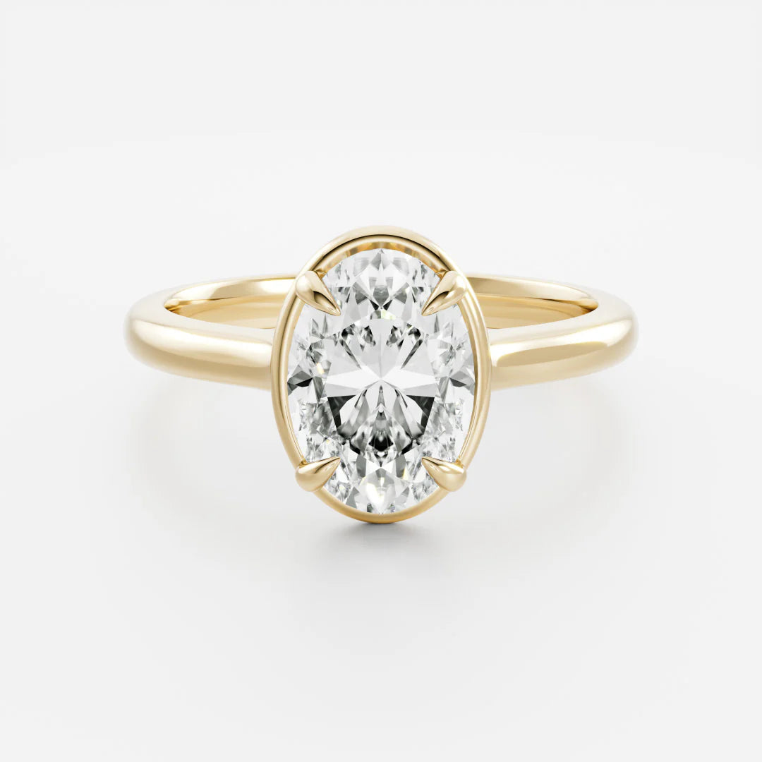 This 2.50CT bezel set oval cut lab grown diamond ring showcases timeless elegance with a bold, modern finish. The oval solitaire is beautifully framed in a smooth bezel setting, enhancing brilliance while offering a clean and secure design. Crafted as a premium solid gold ring, it provides lasting durability and luxurious comfort for everyday wear. This refined diamond ring is a stunning engagement ring that pairs effortlessly with a classic wedding ring. Designed for elegant rings for women, it blends contemporary sophistication with enduring beauty. A meaningful choice for anniversary gifts, this ring celebrates love with radiant sparkle and lasting style.