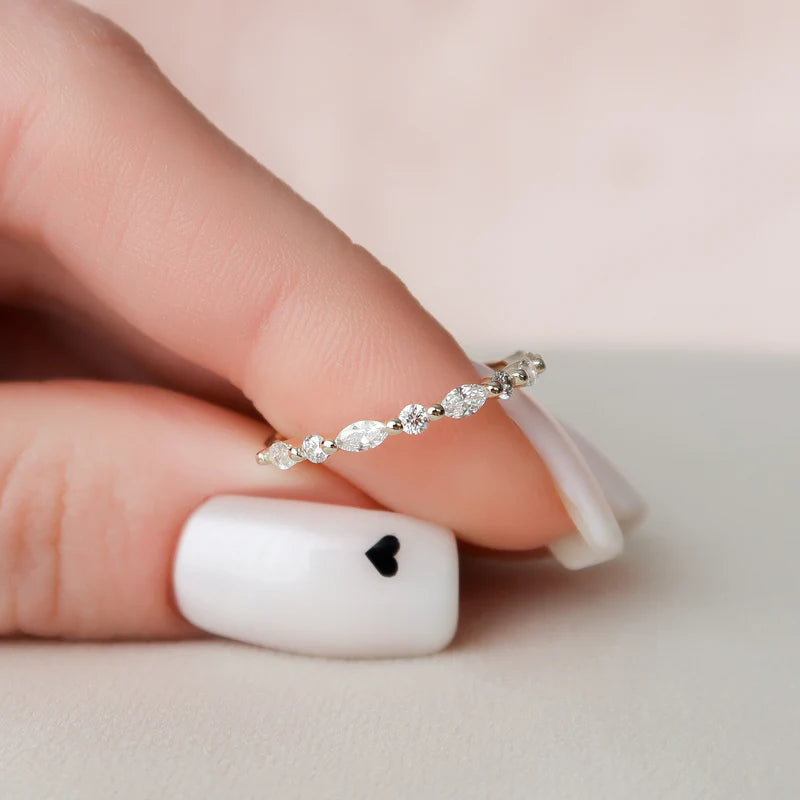 Round And East West Marquise Lab grown Diamond Floating Bubble Pave Wedding Band